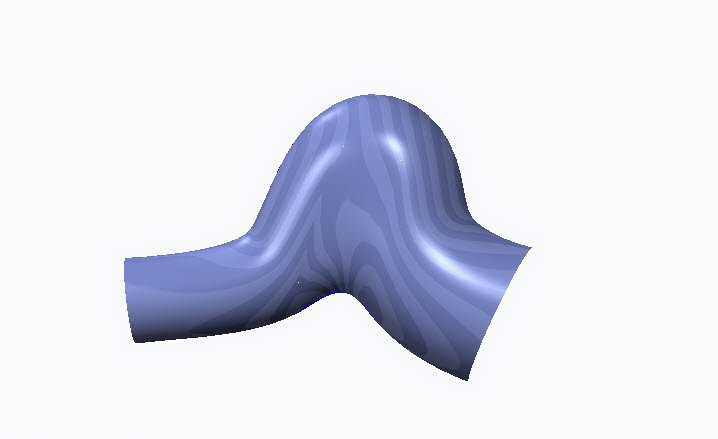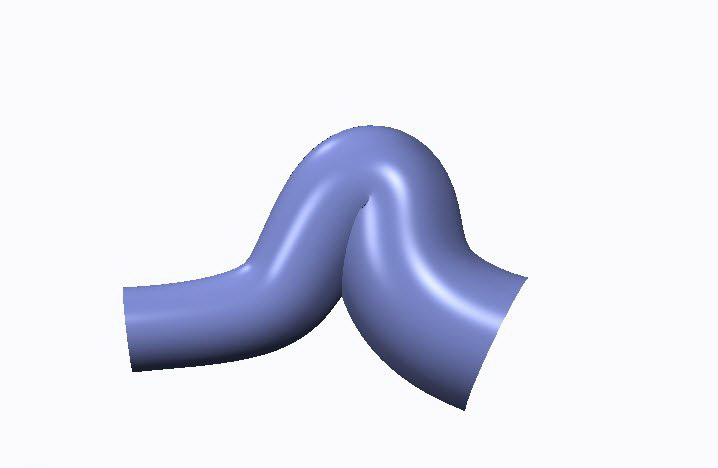 的扫描功能的朋友都知道,在扫描过程中,如果引导线的转弯半径小于扫描截面半径时,扫描出来的曲面就很容易产生自交现象。如下图示: