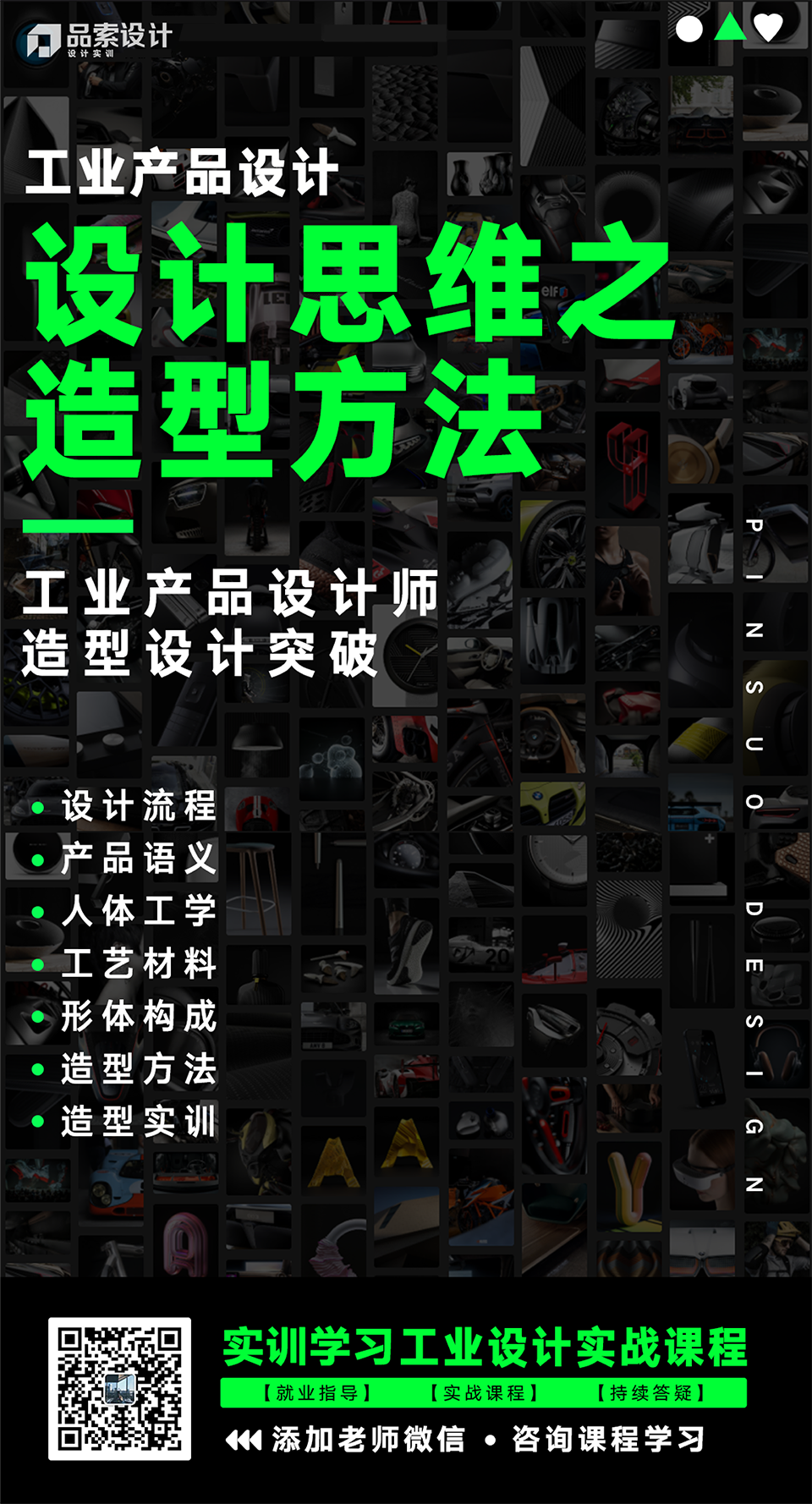 本课程是以项目需求为载体,综合考虑造型分析、造型应用、商业因素、企业品牌、产品DNA、材料工艺、人体工学等要素,学习造型技巧与方法,培养造型思维能力。