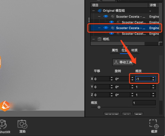 于是,我在右边的“位置”面板上,X轴缩放到区域手动输入了一个“-1”,效果如何呢?
