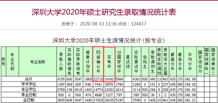 今年8月份,深圳大学公布了其2020年硕士生源情况统计表,在这张表中,我们能看到2个数据: