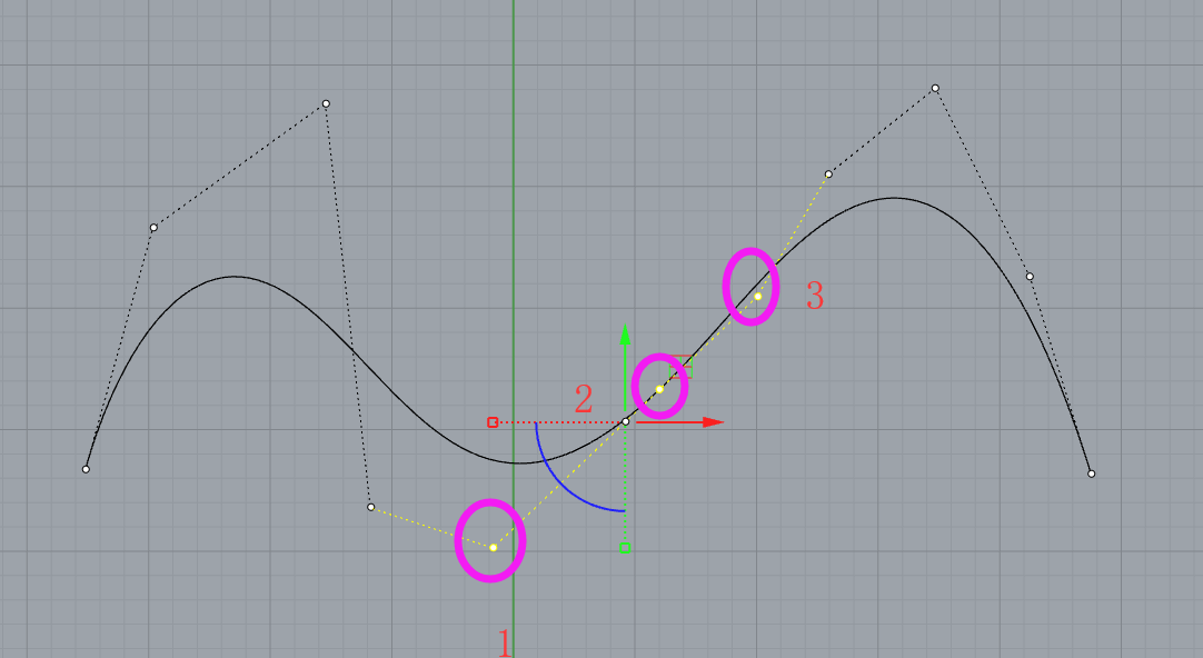 上图为同一曲线,分成两段表达,可以看到 黄色 点处为两条曲线连接的地方,123三个点在同一直线上