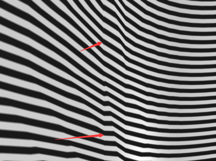 通过上图,可以看出,斑马纹是不连续的,即相交处斑马纹断开错位排列