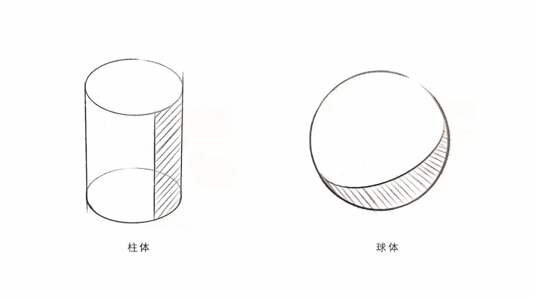 柱体和球体这种曲面的形体,我们只需要区分开受光面与背光面就可以,下面我们就来看一下具体的绘制方法。