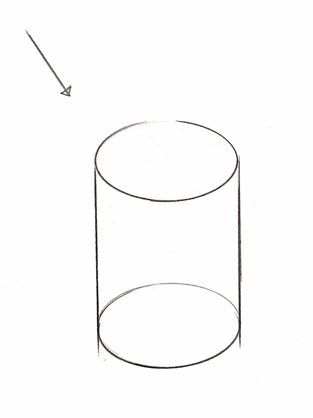方法二:在工业手绘中,正圆我们只需要掌握第一种方法即可,因此我们来讲解一下针对圆柱体绘制另一种投影方法;