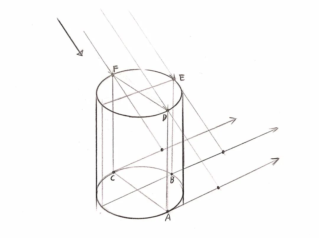 步骤3:过图中A、B、C点做出投影的方向;