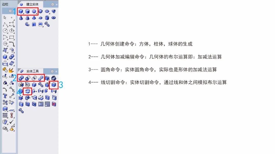 实际工作中,是有非常多的品类产品造型是几何造型。这时候,在犀牛的建模中,实体命令就非常实用。和曲线,曲面一样,命令分创建命令,编辑命令。