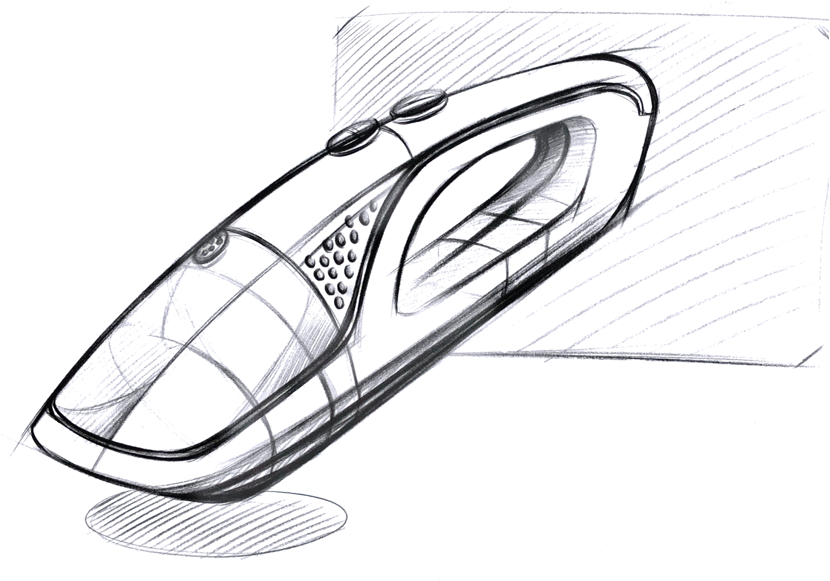 下面我们来看一下如何去运用均匀过渡排线在工业产品手绘作品中表现产品形体上的空间。