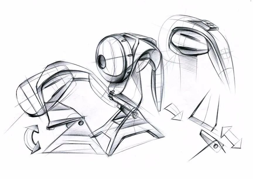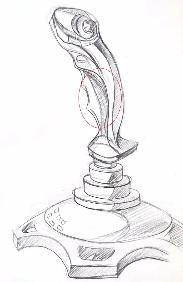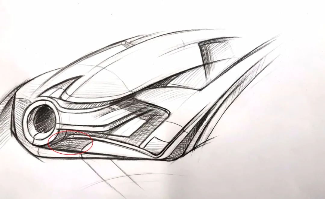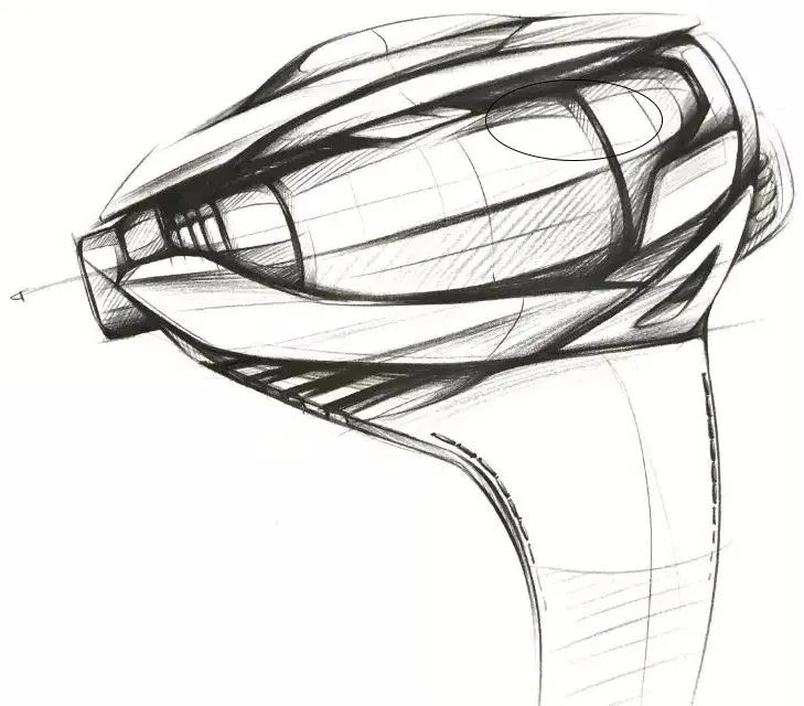 在工业产品设计手绘中,掌握排线的曲直和轻重极为重要。好的排线应该是两头虚中间实的线条,方向有秩,疏密均匀,适当变换排线方向,一层一层的加深,切忌乱涂。