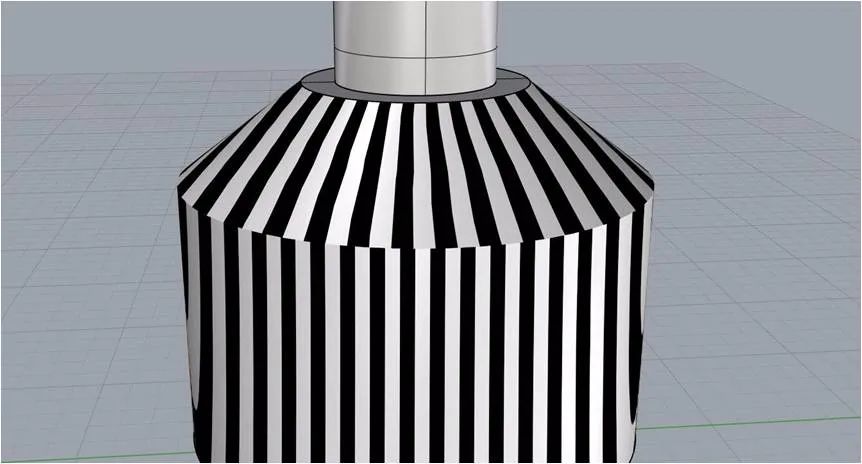 两个面之间的连续性,通过斑马纹可以做粗略的判断,斑马纹的走势,是平滑过渡的。如下图所示: