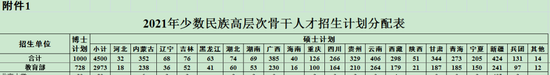 附:教育部办公厅关于下达2021年少数民族高层次骨干人才研究生招生计划的通知