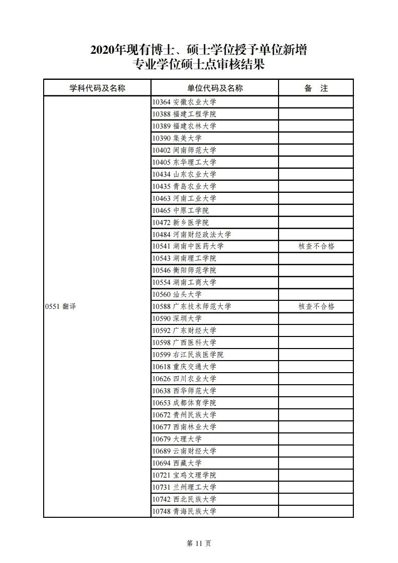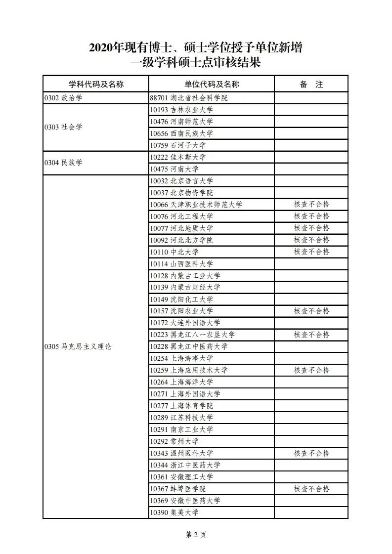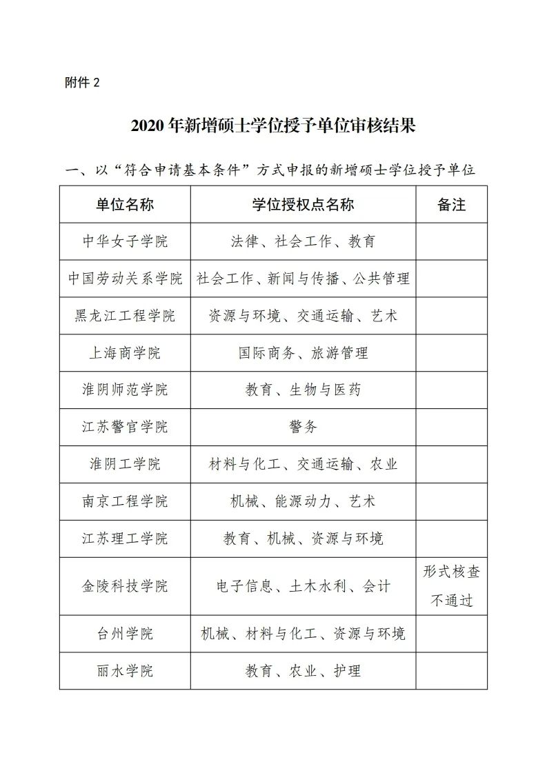 2.2020年新增硕士学位授予单位审核结果