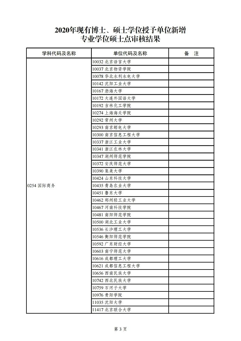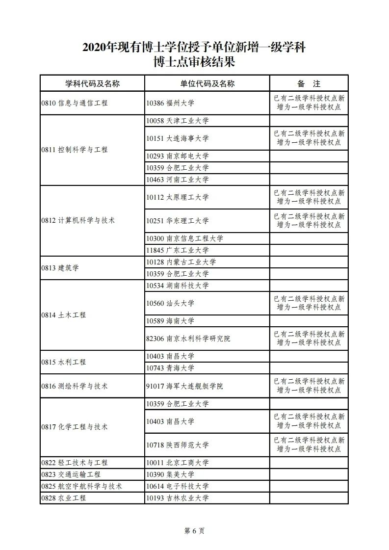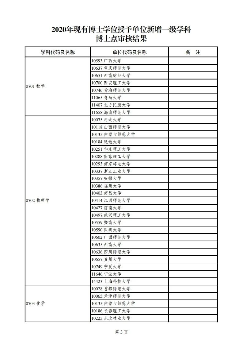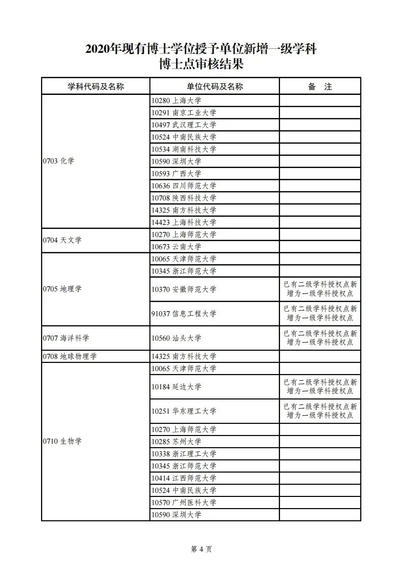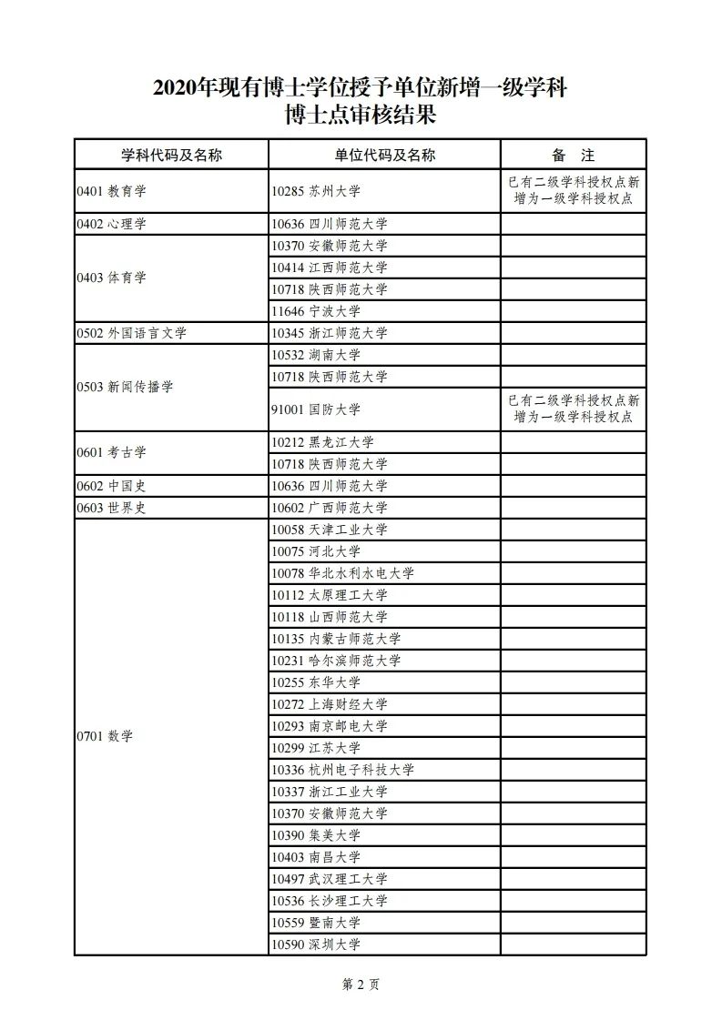 3.2020年现有博士学位授予单位新增一级学科博士点审核结果
