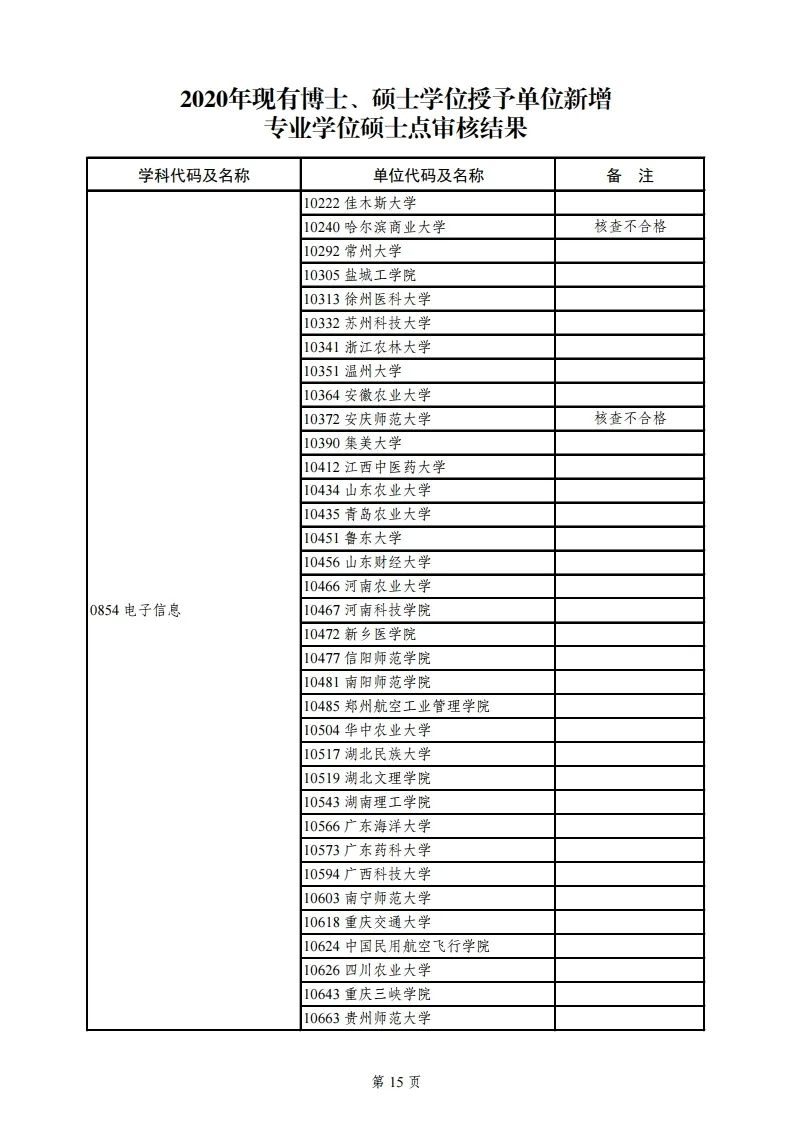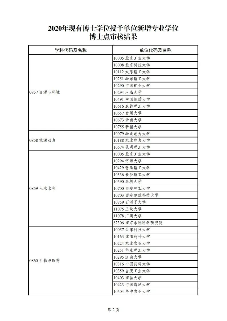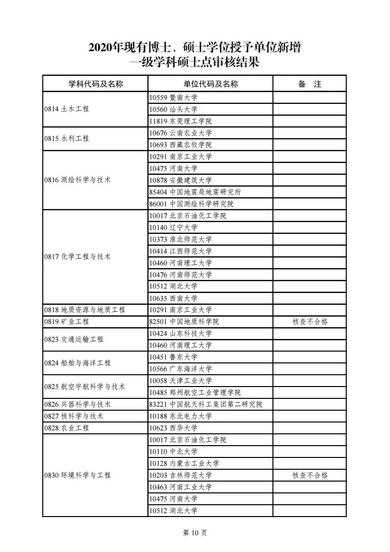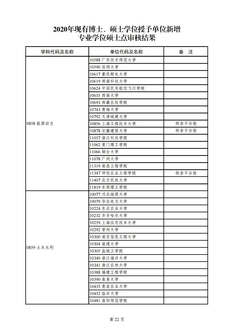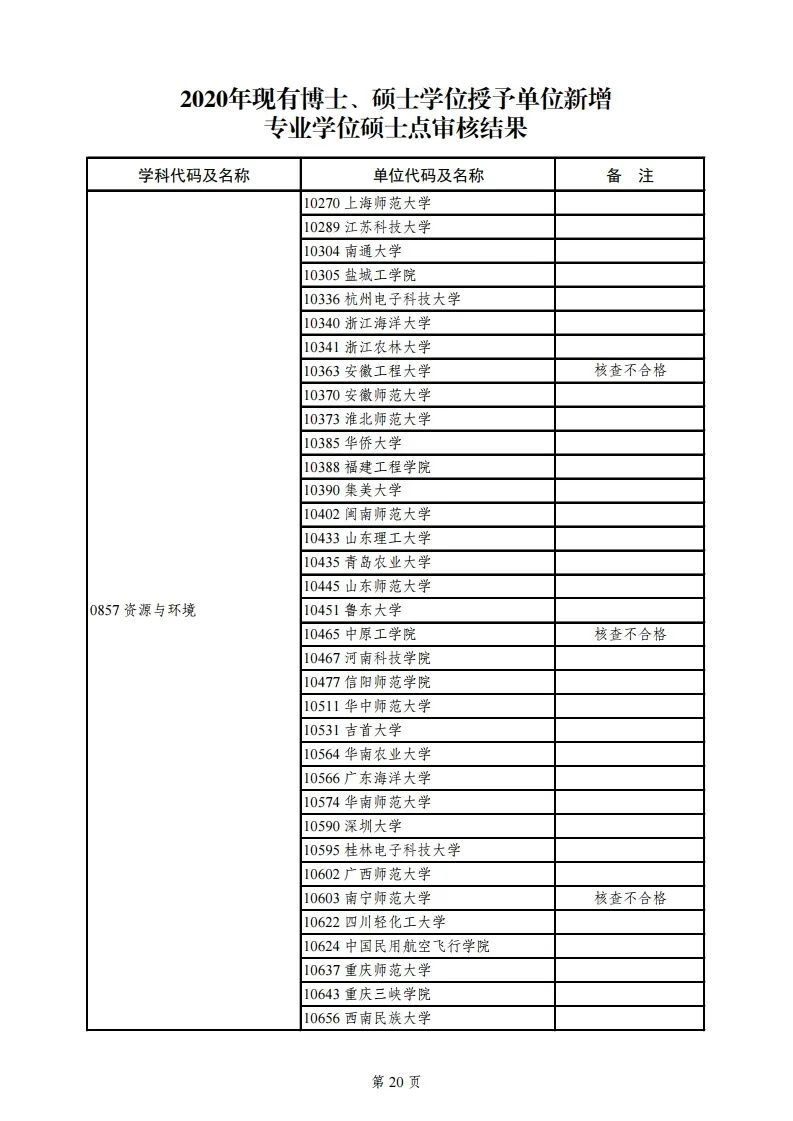 3.2020年现有博士学位授予单位新增一级学科博士点审核结果