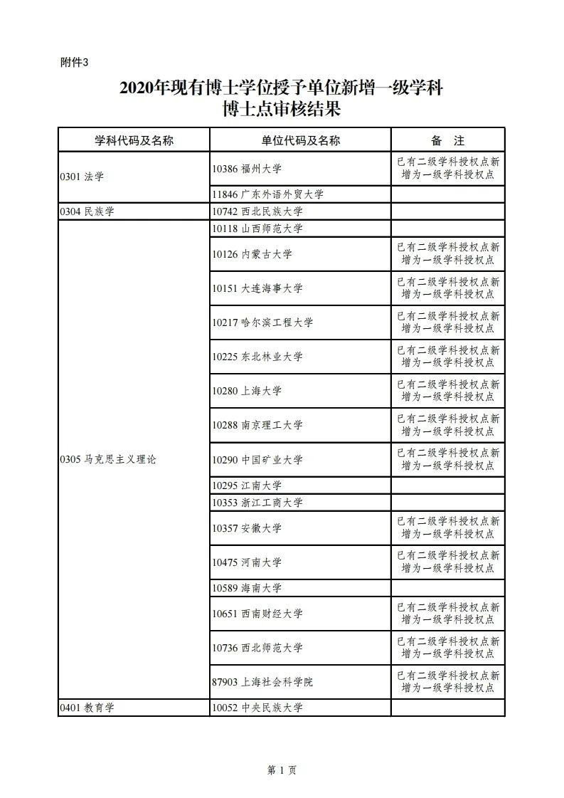 1.2020年新增博士学位授予单位审核结果