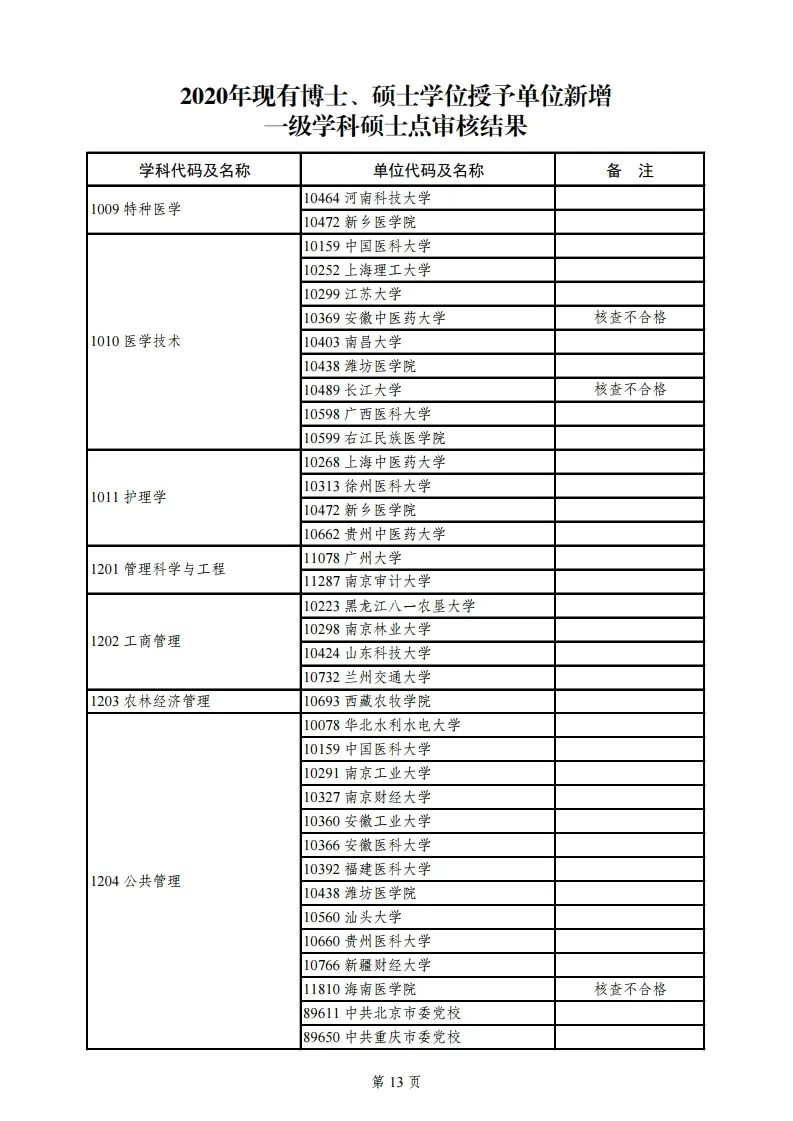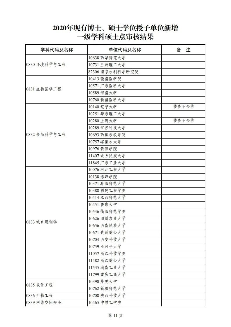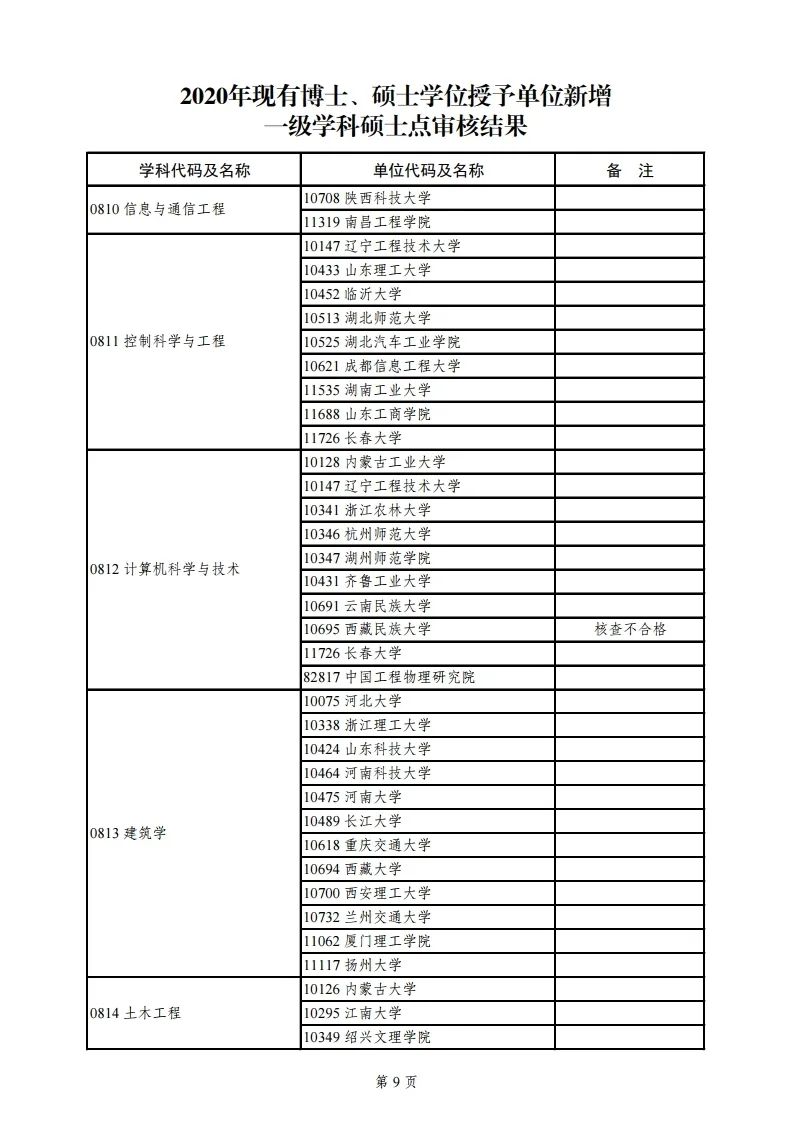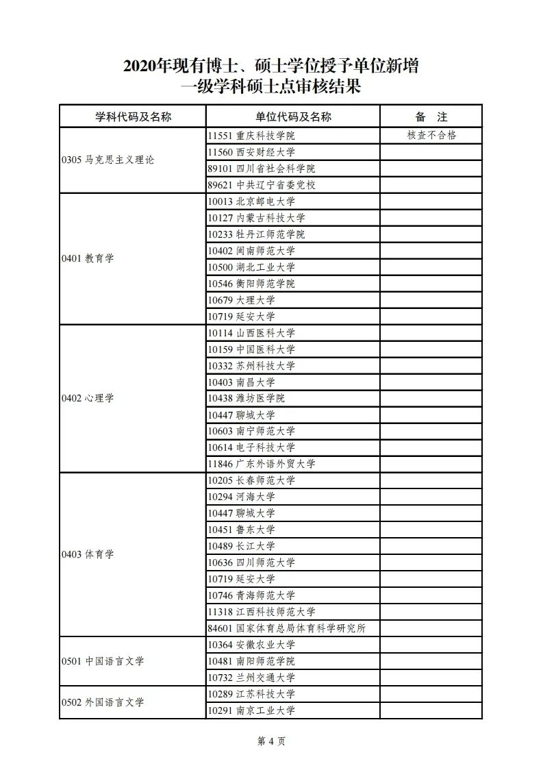 2020年学位授权审核结果公示名单如下: