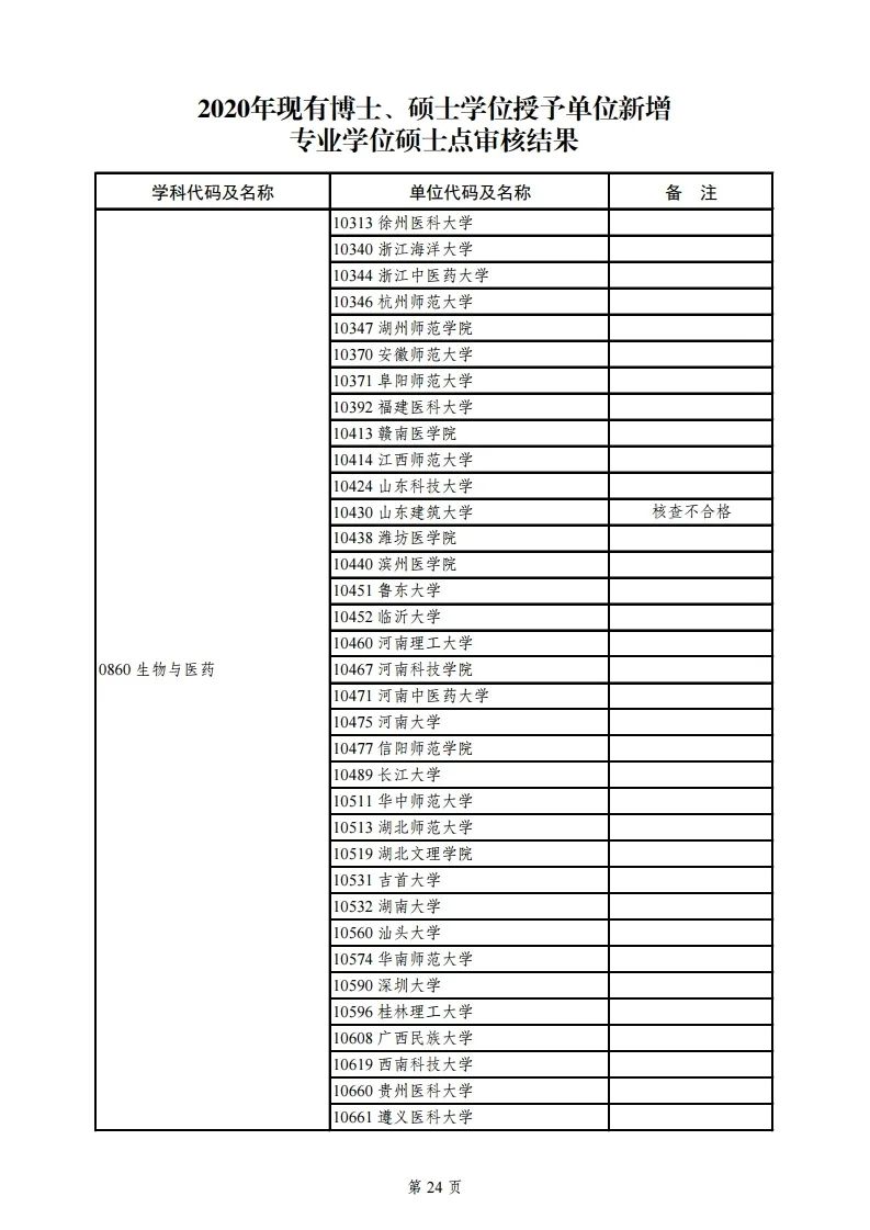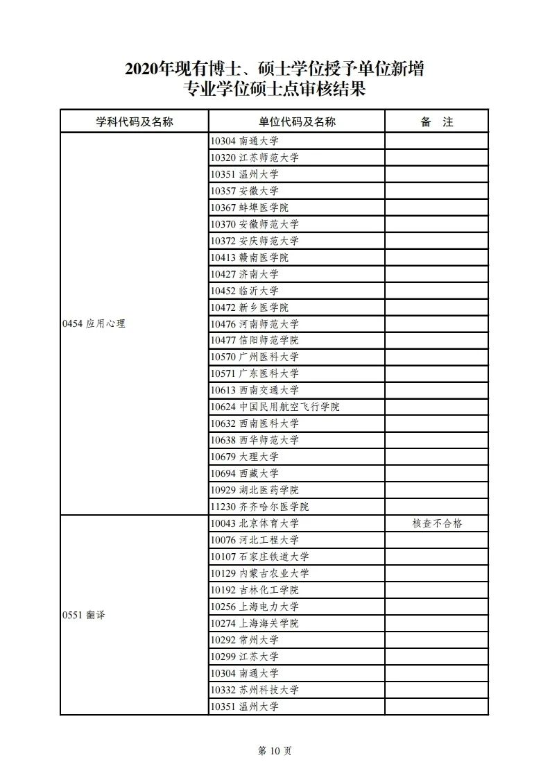 4.2020年现有博士学位授予单位新增专业学位博士点审核结果