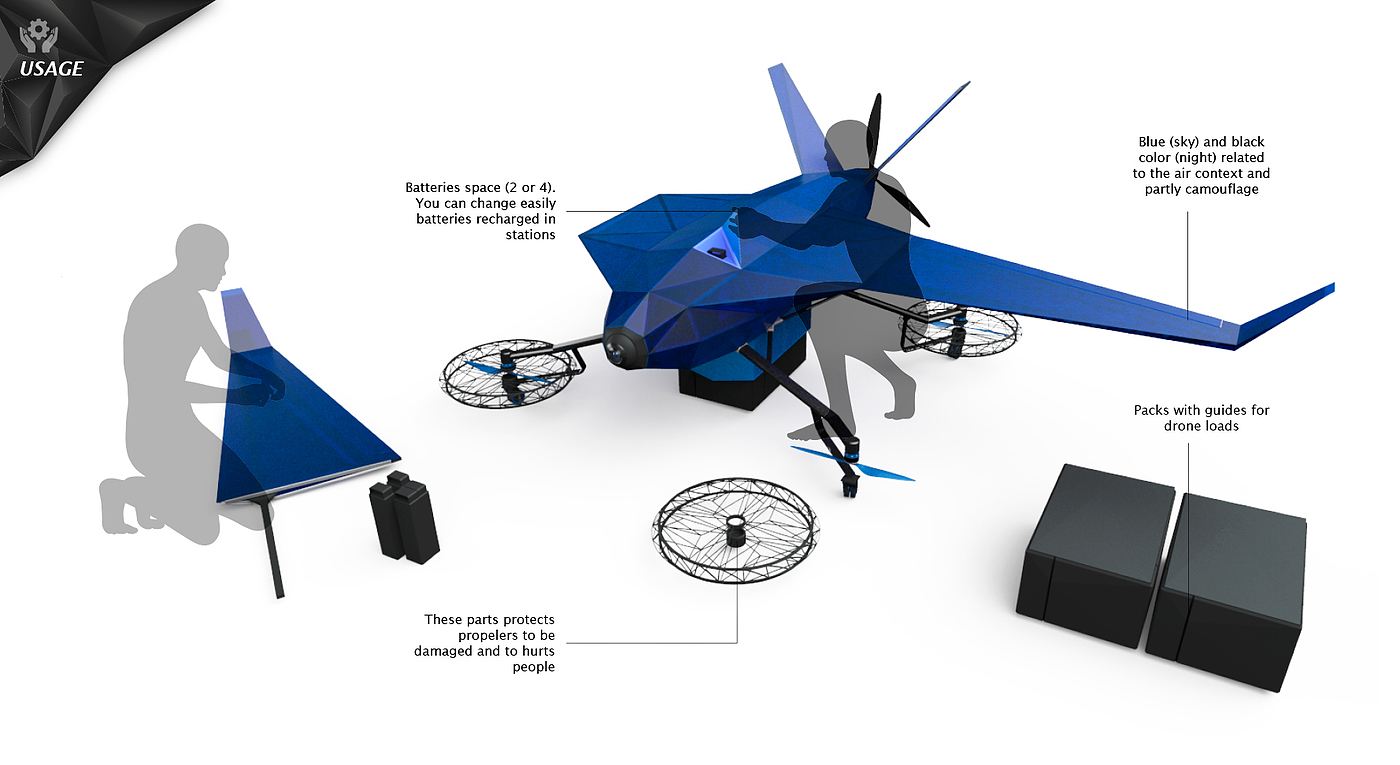 Geoscout是一架巨大的喷气动力无人机,能以每小时55英里的速度携带25磅的重物,模块化的外壳系统,可以很容易地组装和拆卸。