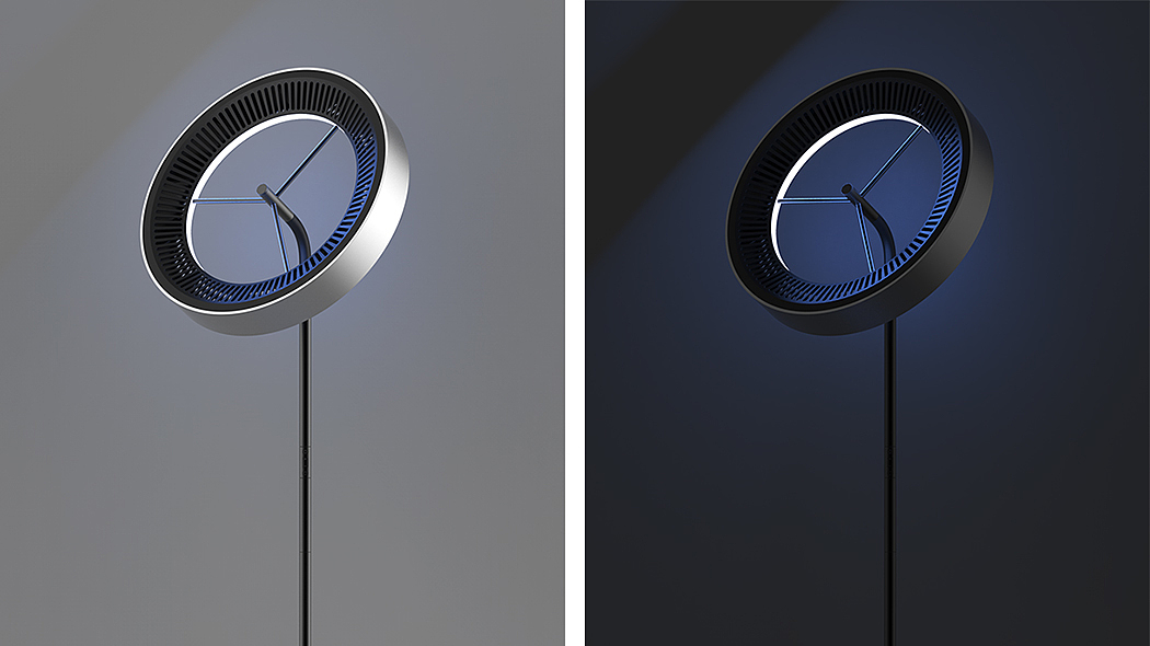一款形如其名的圆环风扇。作为基础的几何形状,圆环式的设计创造了一个现代简约的外在造型,它可以更好的与周围的环境相融合。因为融入了LED灯,所以看起来也像一个落地灯。在概念里,设计师的设想是用电磁导轨替代传统的电机。