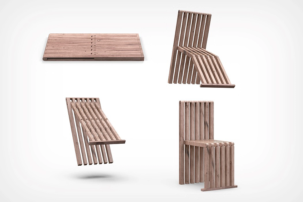 Pad Chair 由多个木条以一种相当独特的方式连接在一起,能够从平坦的 2D 形状转变为整洁、舒适的 3D 椅子。