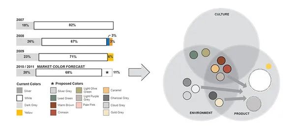 根据设计调研的相关数据进一步明确设计需求和问题后,结合市场竞争,未来技术发展趋势,企业品牌及文化,进行设计策略的制定。设计策略的制定,进一步明确了设计的方向和产品定位,产品调性等。