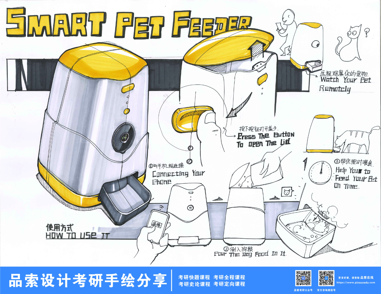 产品手绘技能是工业设计师必备的职业技能,手绘效果图方案是设计初期创意展现,方案构思,思想表达的重要手法之一,优秀的手绘能够更好的表达产品设计方案,让设计师和客户之间达成良好的沟通,有效提升设计中单率,所以,在项目设计前期,除了产品调研之外,产品手绘尤为重要。