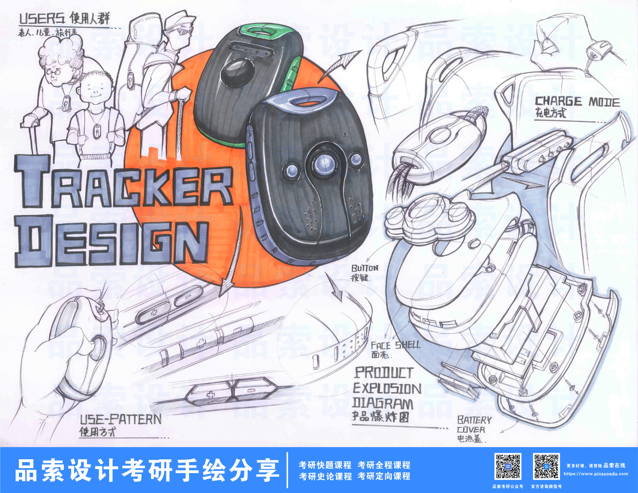 手绘效果图是设计师对手绘草图中可行性较高的设计方案进行效果表现的绘制,在工业作品集中主要用以展示产品的形态及造型。以下是部分学员原创工业设计职业手绘作品,欢迎大家一起探讨。