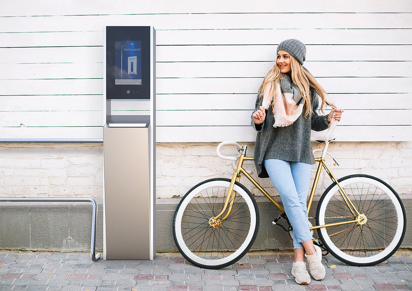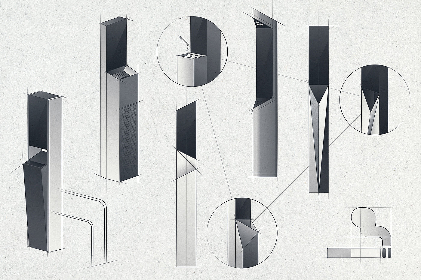 一款公益产品设计,户外智能烟灰缸,明显它的使用场景为户外,同时也更加功能,比如户外广告展示,来自于设计师团队,Max Mysechko、Qvarta Studio、Artemiy Drobyazko。