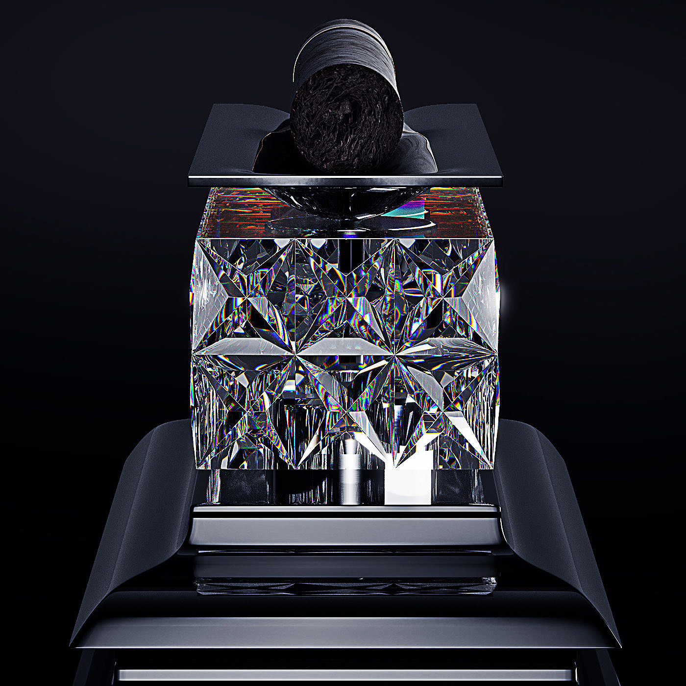 Ashtray III烟灰缸概念设计来自于 Ivan Venkov ,与传统烟灰缸不同的是它的精致感以及高级感,手工切割的几何图案的水晶块,金属顶部形状和金属或木制的底座。