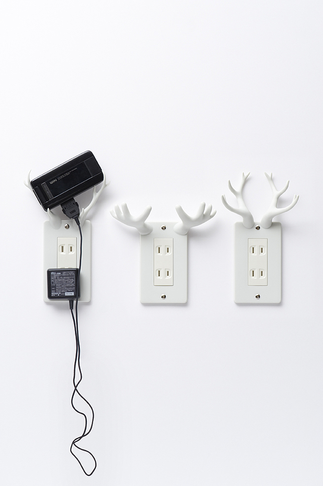 网红工作室 Neodo 的插座重新设计,一款仿生产品设计,鹿角插座设计,鹿角部分采用聚氨酯橡胶材质制作,在给手机充电时可以放置手机方便拿取,表面的柔性设计也可以减少对用户的磕碰伤害。