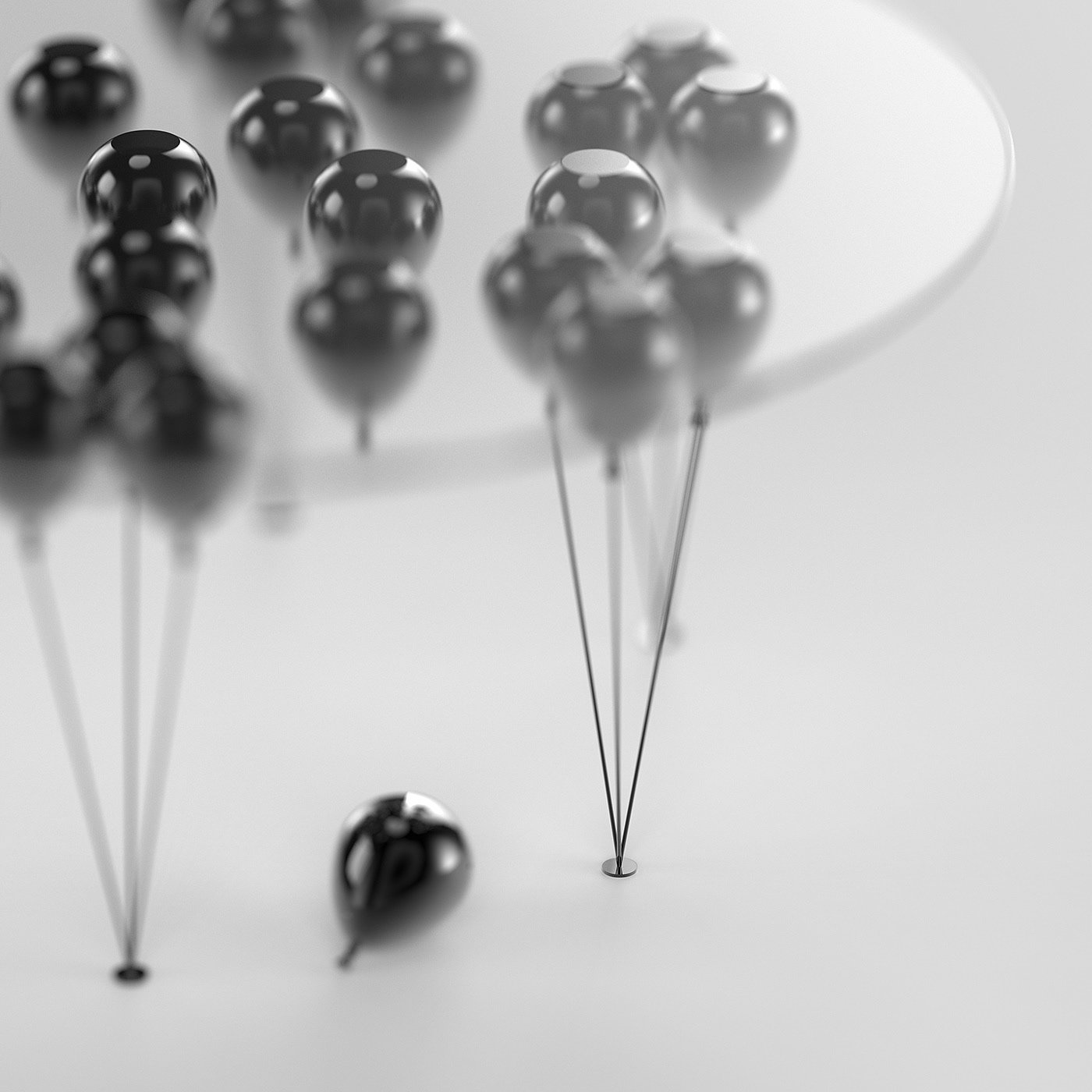 漂浮气球桌子设计,像怀旧致敬!漂浮的气球支撑着桌面,带来强烈的视觉震撼效果。