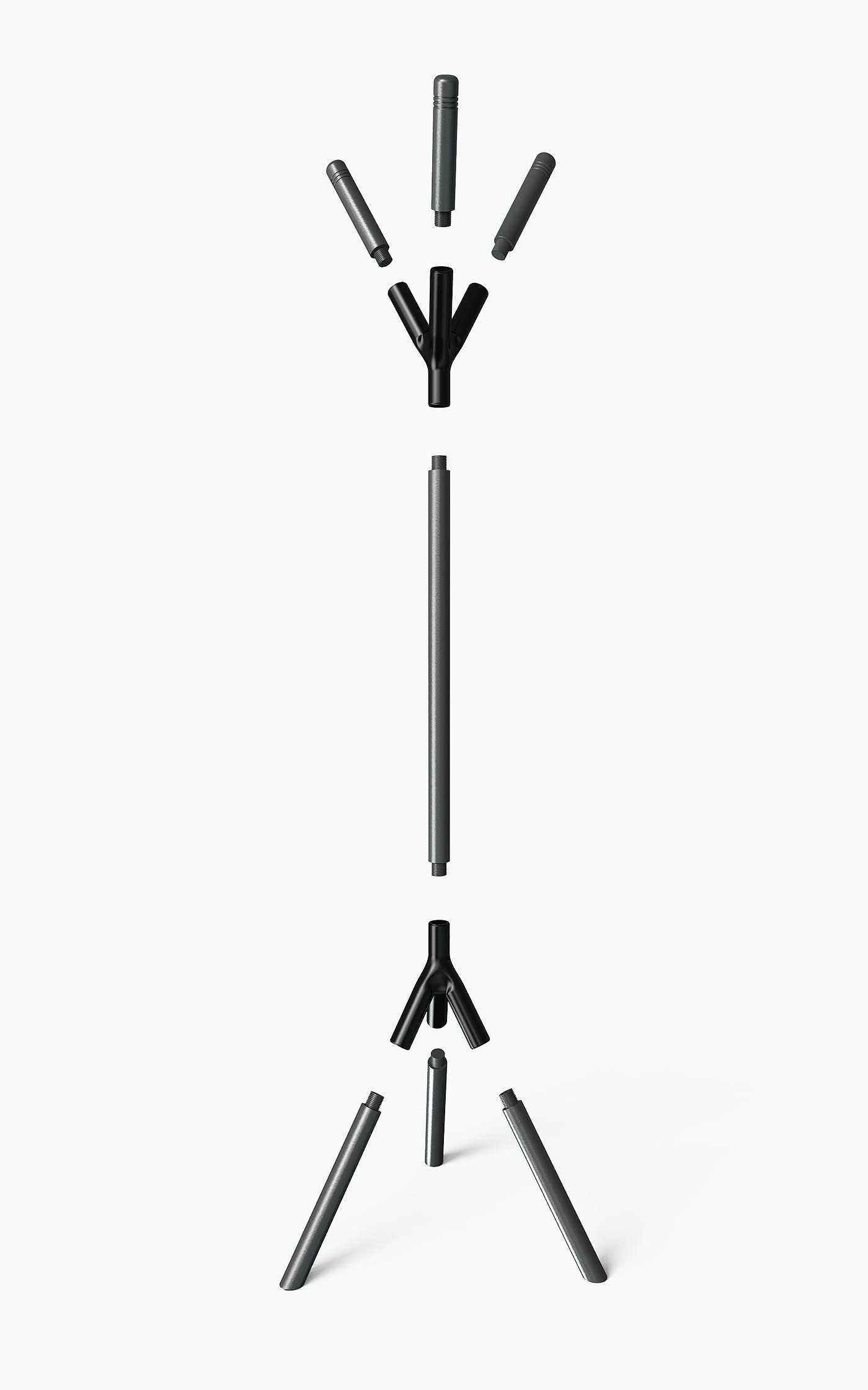 立式衣架是一款极简衣架产品设计,外观造型设计以树枝为灵感的仿生设计,整体为模块化设计,可方便拆卸组装,适合收纳及运输,三角构造更美观的同时也更加牢固,方便用户放置和收纳衣物。