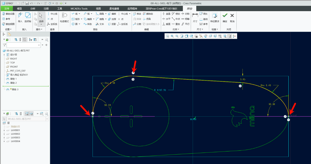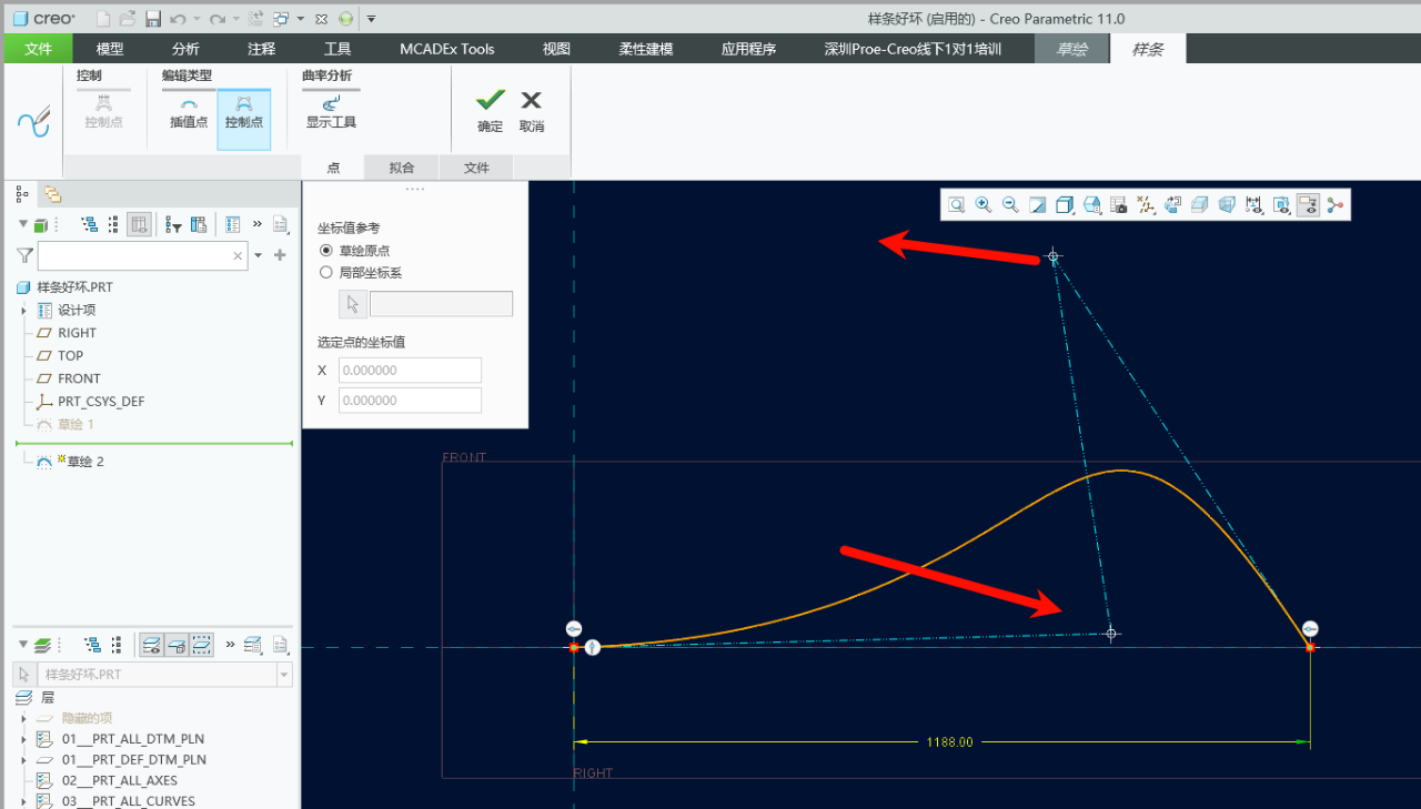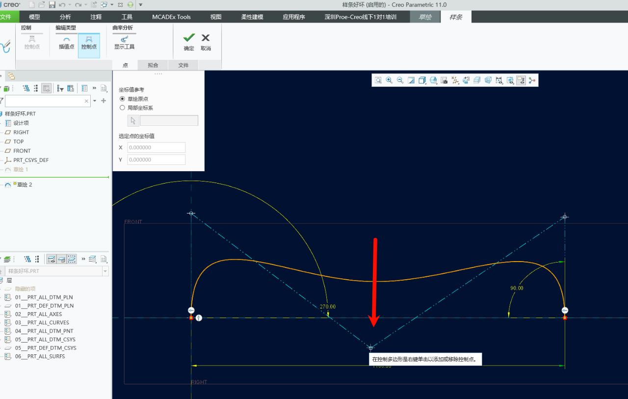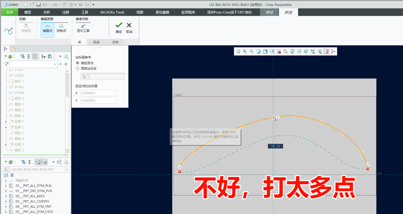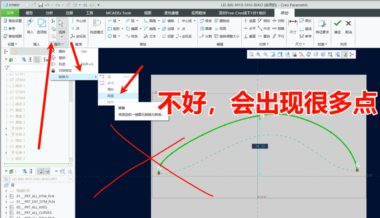 绘制样条,标注距离尺寸之后,依次点取样条-点-线(三者顺序随意,但是必须将交点选上),然后中键标注角度尺寸!