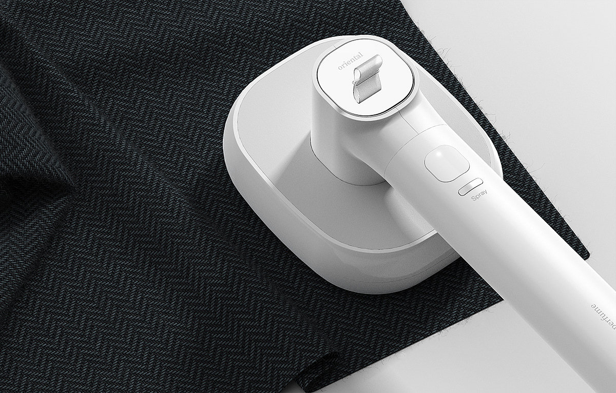 Wear perfume 是一款白色系小家电产品设计,它是一款便携式熨斗,可作为单身贵族居家或者出行达人使用,能够做到随熨随穿,不失为一款让衣服快速整洁的神器,而且它使用起来很方便,有两个按钮包括热电源按钮和香水喷雾按钮。
