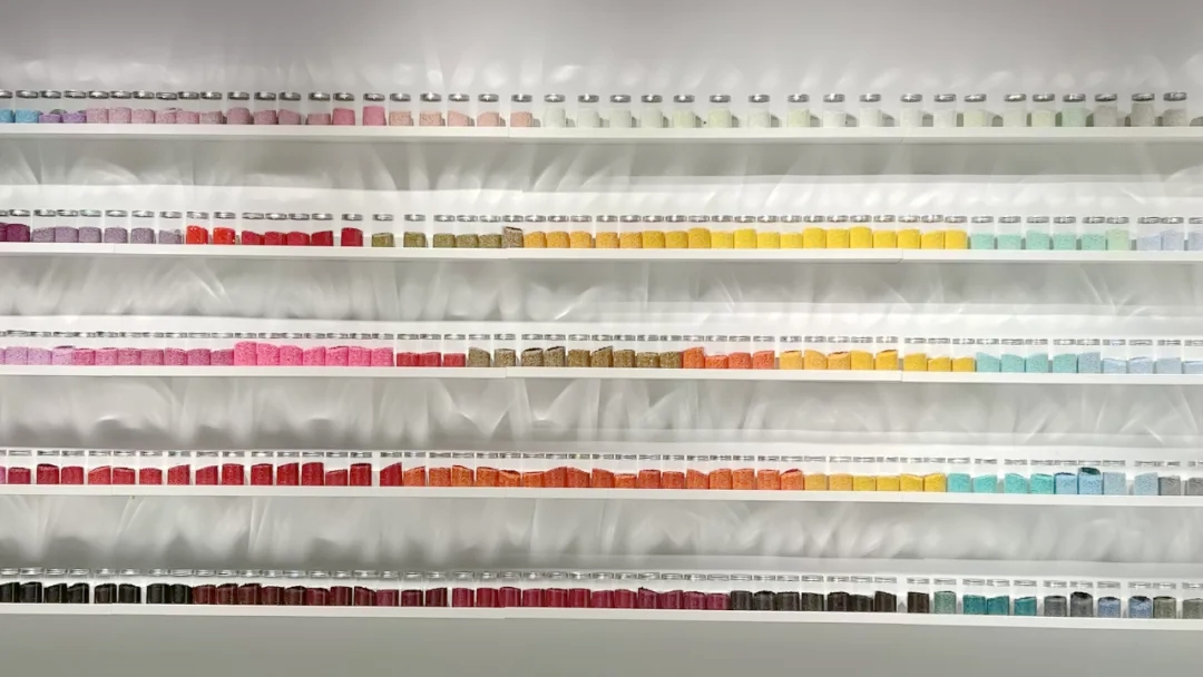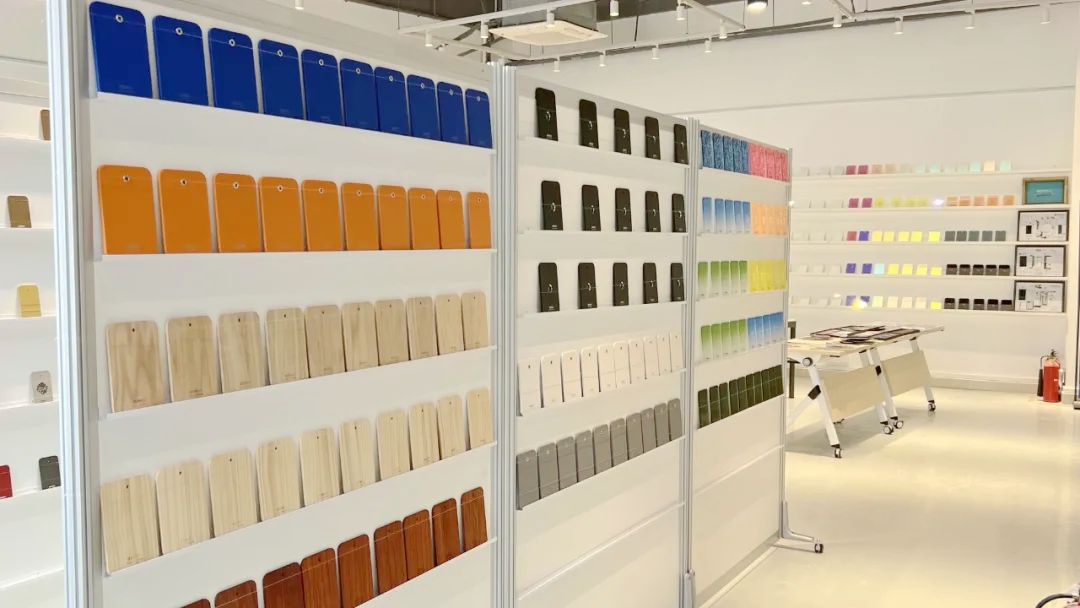 实验室拥有工业原材料色彩墙,涵盖丰富的原材料与色彩的组合,多达十几种色彩原材料的近距离感触与学习,该色彩墙能够清晰呈现材料与彩色和视觉效果,帮助用户进一步提升色彩系统与材料设计的认知及学习。