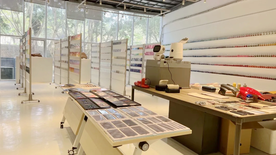 实验室拥有定制化CMF工艺材料展示样品,教具,包括塑料、金属、木质、纺织、皮革等新材料新工艺样品,涵盖了当下科技领域主流的表面处理工艺,实验室配备当下各个产业最新的新材料,新工艺,紧跟时尚与潮流趋势。