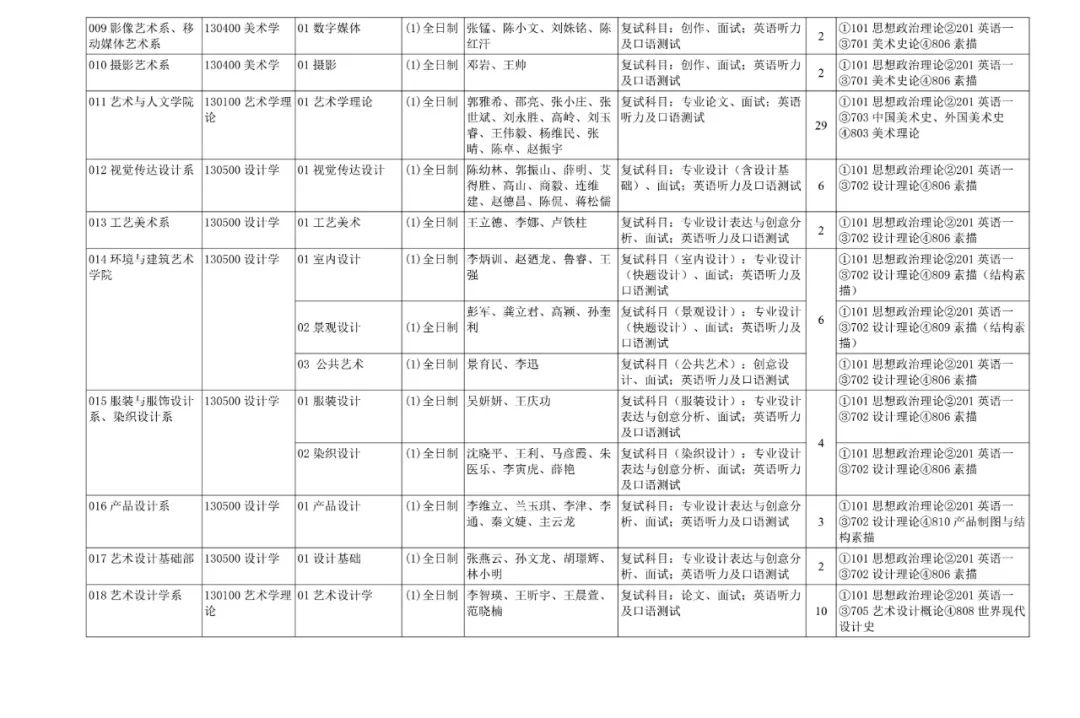 排名,环境设计按照室内、景观、公共艺术分别大排名,服装设计、染织设计分别单独排名)