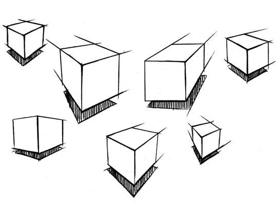 本章内容我们主要讲到立方体的一点和两点透视,以及立方体透视实战时的技巧和注意事项,前期为了规范我们的画法应该使用辅助线去作画,当经过大量的练习后,后期我们就可以凭借练习得来的手感来作画,虽然不如做辅助线精准,但整体关系是舒服的即可。