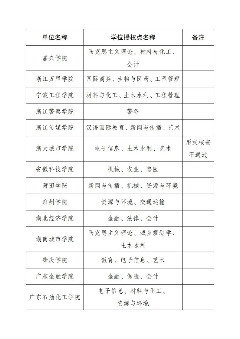 根据《博士硕士学位授权审核办法》规定,按照突出质量导向、坚持服务需求、强化特色发展、着力优化结构的原则,经条件核查和专家评议,现对各地区(系统)推荐的新增博士硕士学位授予单位、博士硕士学位授权点、自主审核单位的审核结果予以公示,公示期为2021年7月26日—8月6日。若有异议,请在公示期内以实名向我办反映,并提供身份证件号码和联系方式。若以单位名义反映,请加盖单位公章。不受理匿名反映。