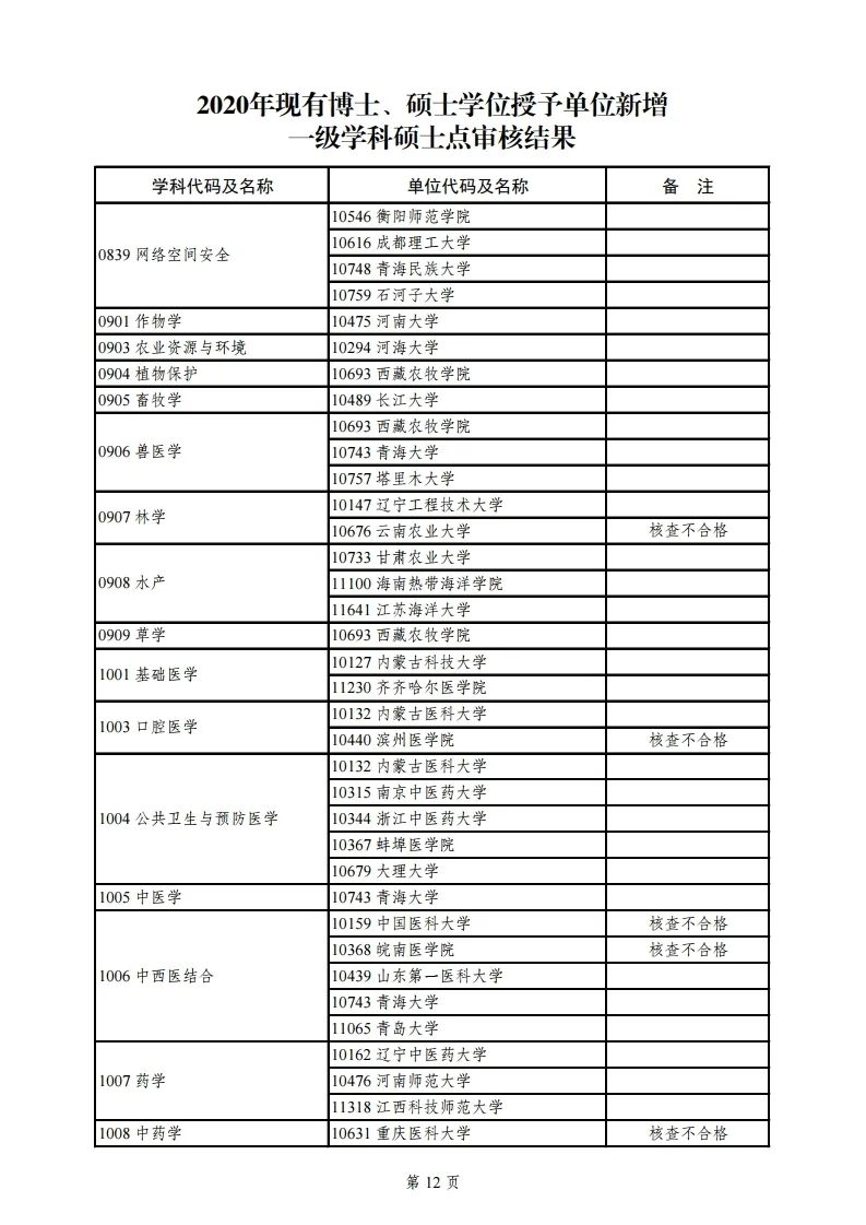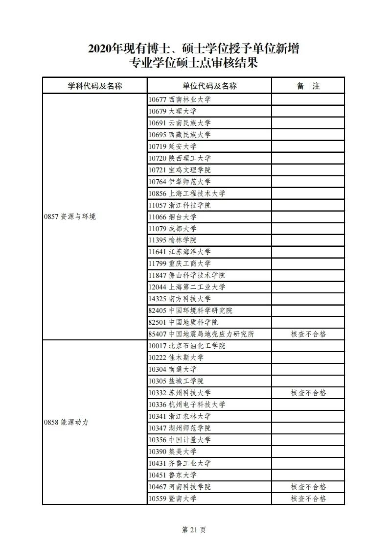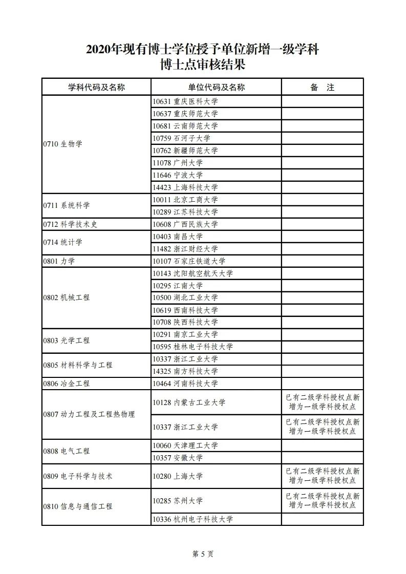 3.2020年现有博士学位授予单位新增一级学科博士点审核结果