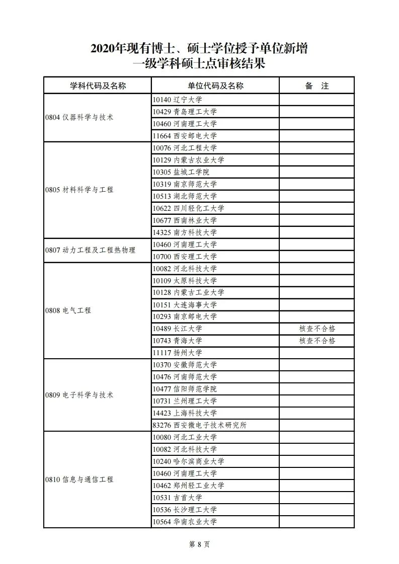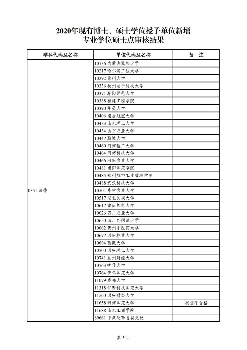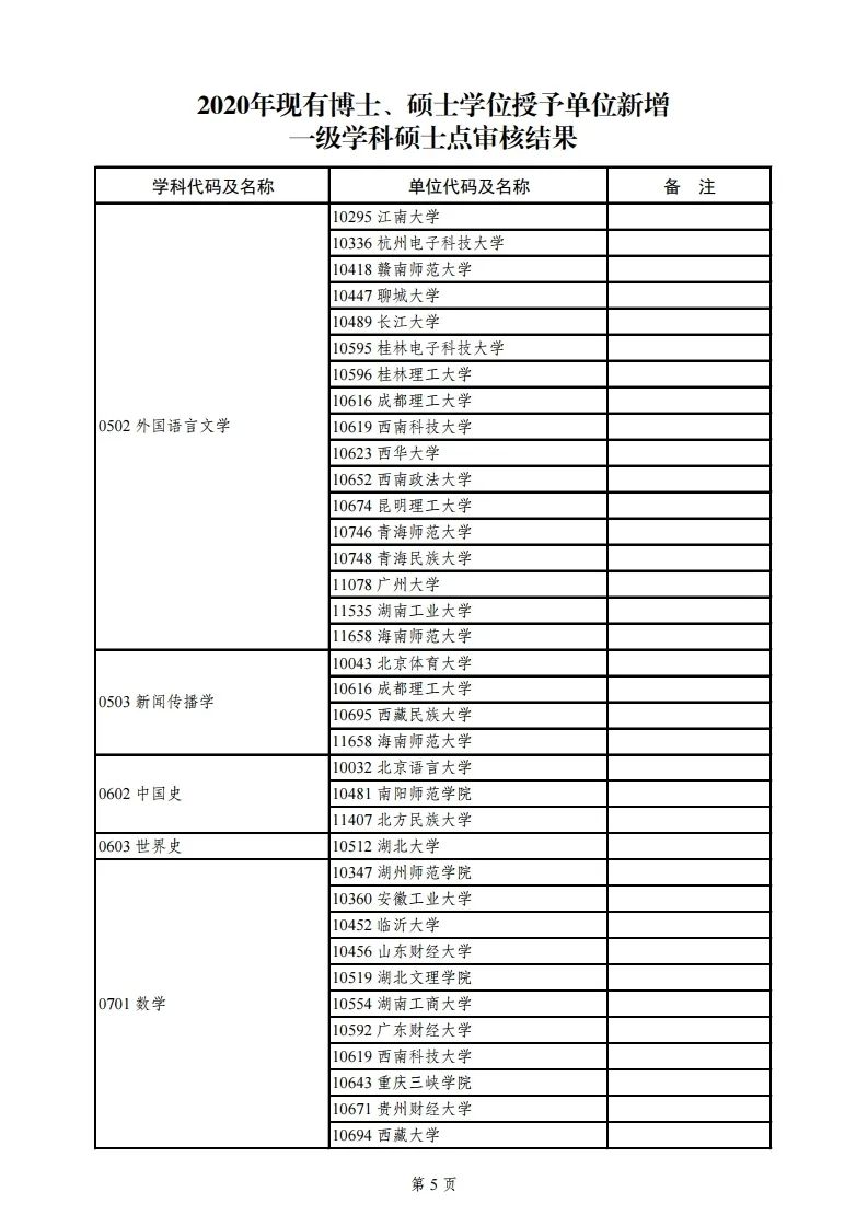 5.2020年现有博士、硕士学位授予单位新增一级学科硕士点审核结果