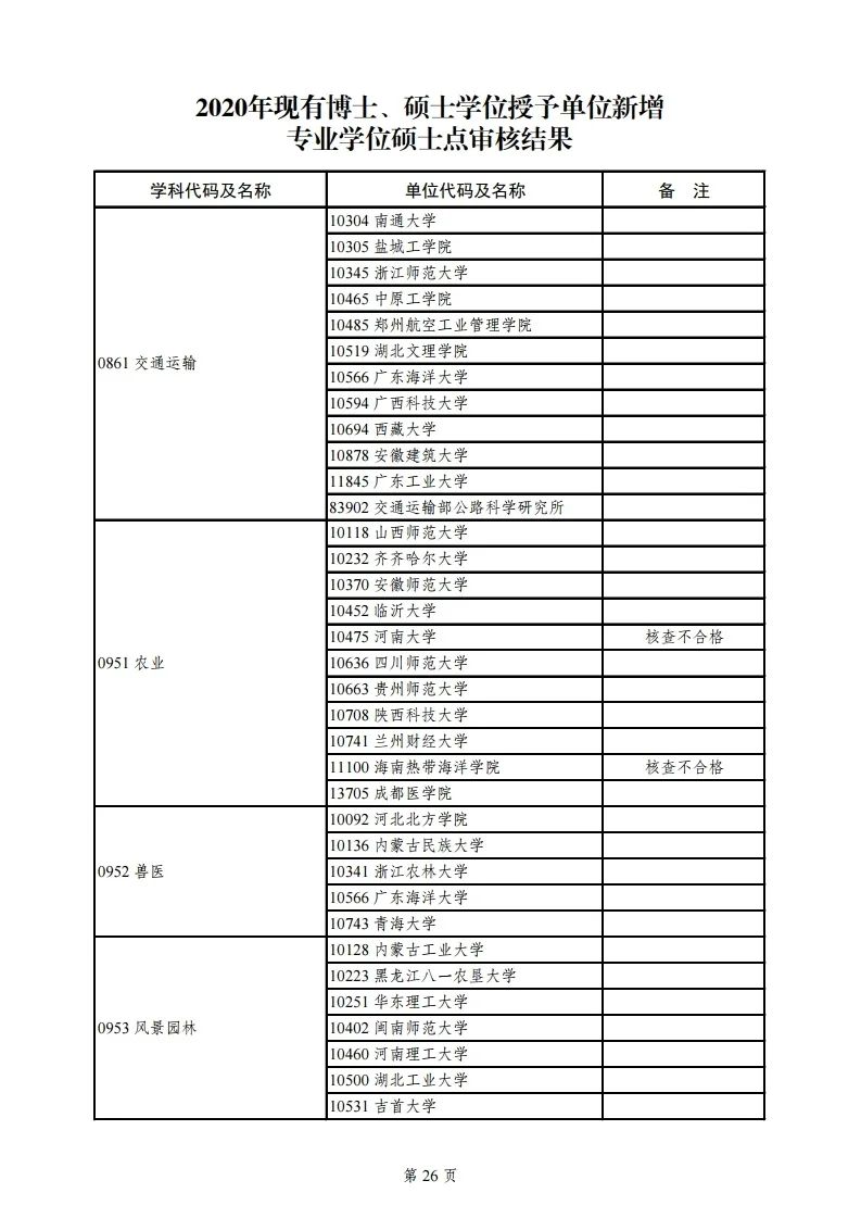 7月26日,教育部发布《2020年学位授权审核结果公示》。