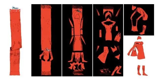 A-POC(A Piece of Cloth “一块布”)为基底,在单根织物上裁剪服装,衣服在铺展时无比贴合地面,仿佛一件工整的艺术品,除了精巧的折痕,不能见其它。