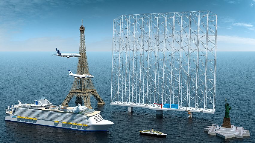 挪威公司 Wind Catching Systems 正在开发一种漂浮式海上风力发电机,可以为 80,000 户家庭提供可再生能源,价格与传统化石燃料相当。它们的巨大叶片长达 115 米,这些浮动涡轮机通常在每秒 11 米左右的风速下达到最大。通过使用更多具有 15 米长叶片的小型涡轮机来提高浮动风电场的效率,这些涡轮机每分钟可以进行更多的旋转并利用高达每秒 17 至 18 米的风力,产生更多的能量。