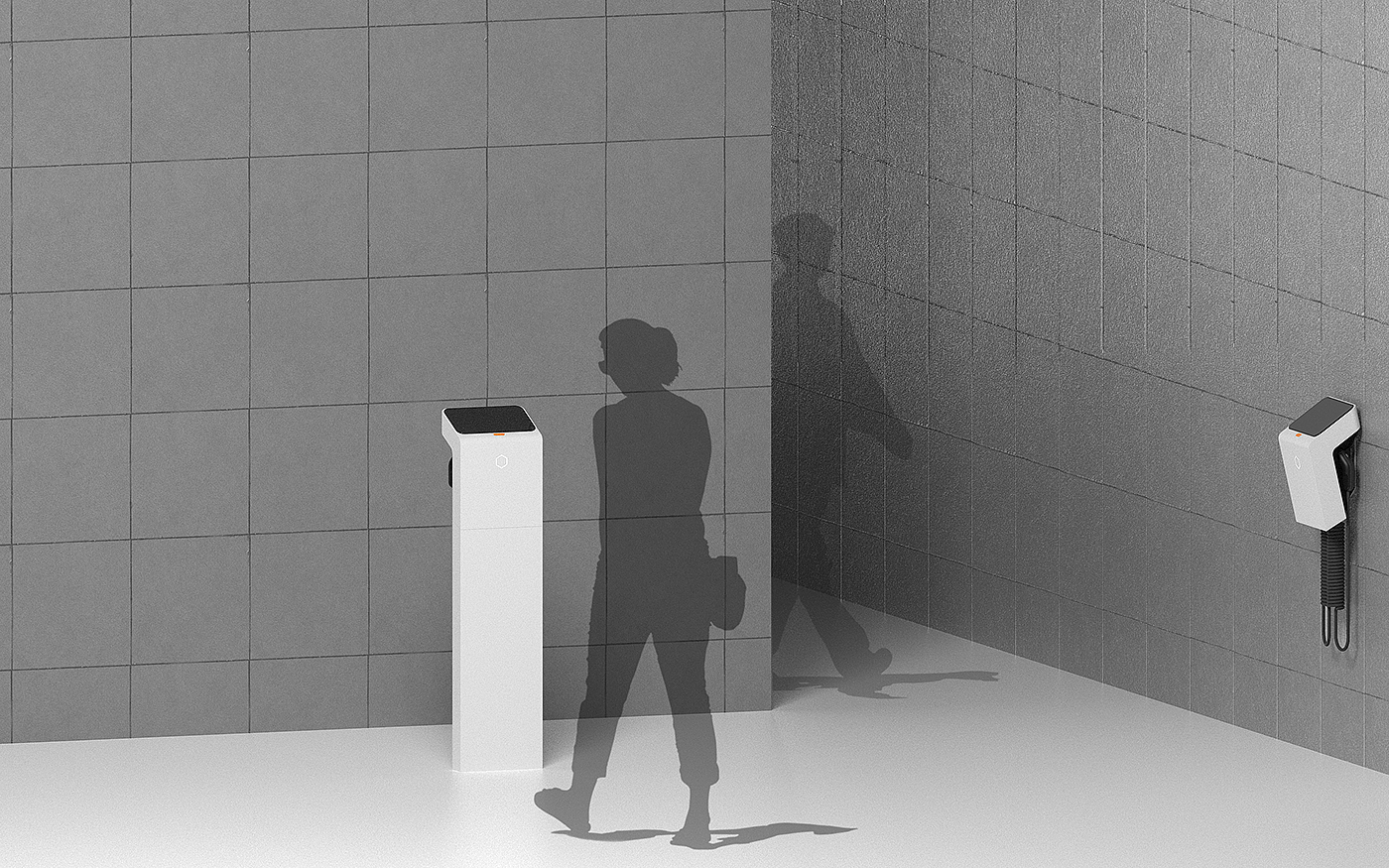 一款概念充电桩设计,解决了日常新能源汽车充电续航问题,方便实用的充电桩产品设计解决方案。