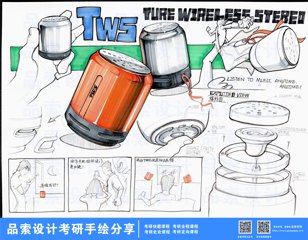 产品手绘技能是工业设计师必备的职业技能,手绘效果图方案是设计初期创意展现,方案构思,思想表达的重要手法之一,优秀的手绘能够更好的表达产品设计方案,让设计师和客户之间达成良好的沟通,有效提升设计中单率,所以,在项目设计前期,除了产品调研之外,产品手绘尤为重要。