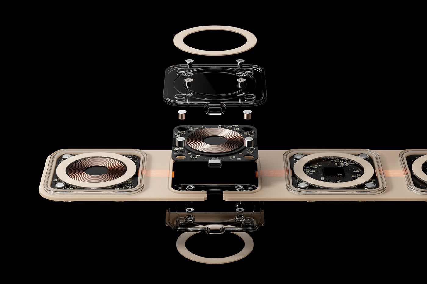 Fold Wireless Charger 是一款折叠式无线充电器,旨在解决多设备及便携充电问题,折叠使用户最多可以同时为三种产品充电,该设备还可以折叠成多种配置,以适合用户当前的要求。