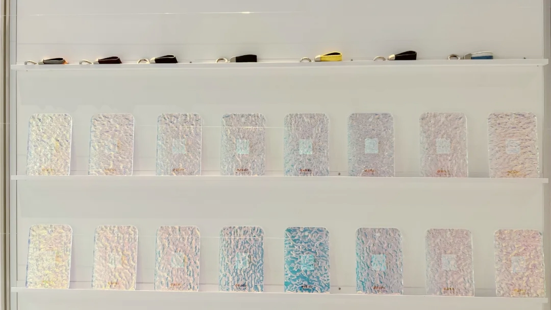 为了让参观者便于认识、学习和理解CMF创新实验室,此次实验室建设为每个工艺材料样品展区配备了标识引导说明,可以帮助参观人员一目了然了解实验室各个展区的功能划分,快速及系统了解每个工艺材料样品展区。