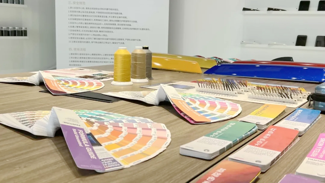 除材料工艺及色彩展品之外,还需要有配套专业性的CMF检测工具设备,此次实验室配备了色彩灯箱、色彩检测设备等相关设备,作为CMF设计师的得力助手,这类设备能帮助设计师培养和提高目测能力和对颜色的敏感度。