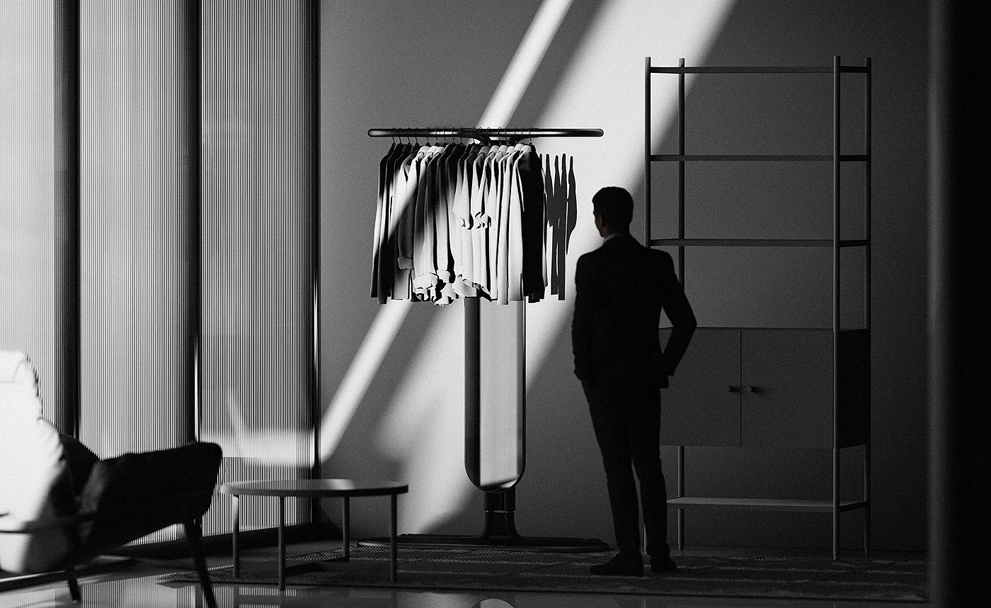 RAK 是一款重新设计的衣架产品设计,它既是一款家用衣架,同时也是一款家用健身工具产品设计,一款多功能产品设计,设计师巧妙的将将引体向上杆与衣架相结合,必要时它可以是健身工具,闲暇时它也可以是衣架工具用品。