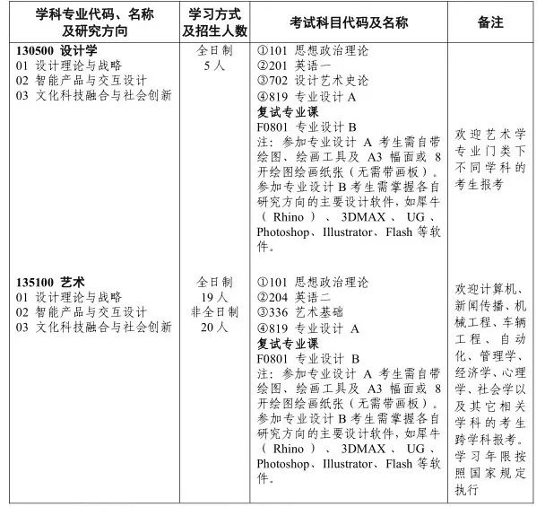 湖南大学设计艺术学院 2021 年硕士研究生招生专业目录